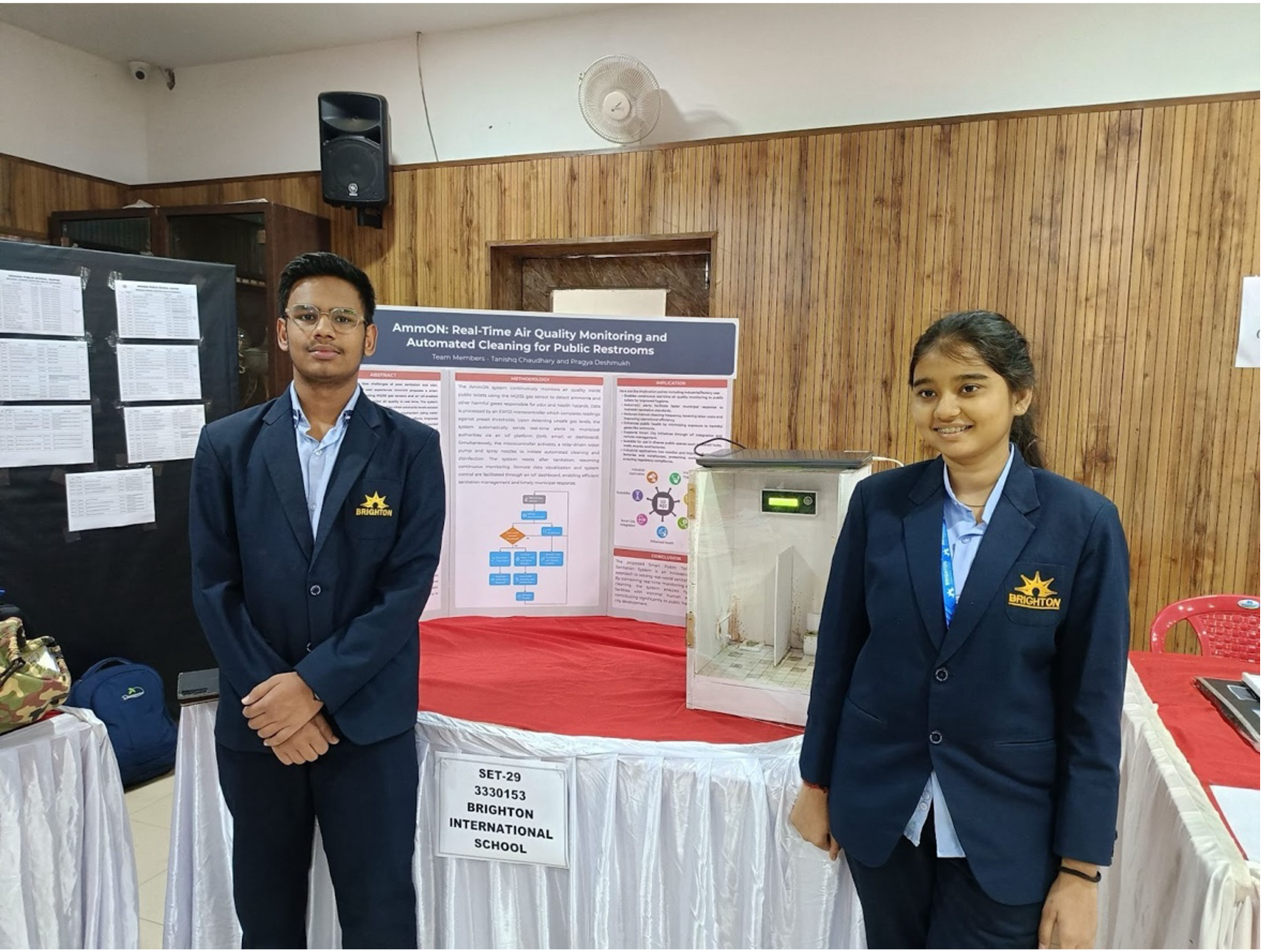 Another team from Brighton, Tanishq Chaudhary and Pragya Deshmukh, presented their project “Ammon.” Their project focuses on developing an innovative solution related to ammonia detection and monitoring, addressing environmental and safety concerns where ammonia levels may affect health and surroundings.
